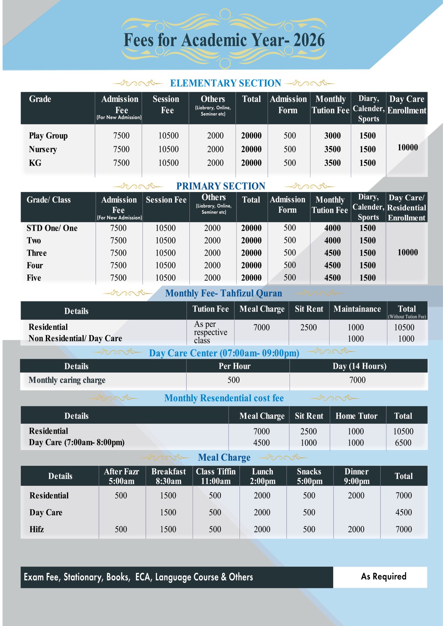 We offer a blended curriculum combining both Arabic and English mediums enriched with moral and Islamic education.